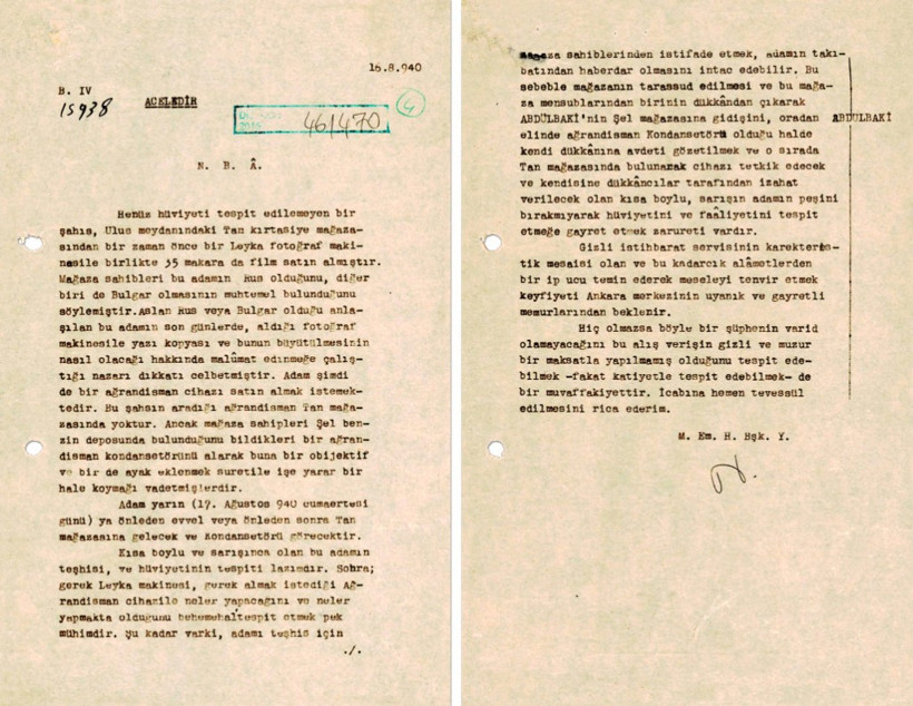 Raporun devamında, “Adam yarın (17 Ağustos 1940 Cumartesi günü) ya öğleden evvel veya öğleden sonra Tan mağazasına gelecek ve kondansatörü görecektir. Kısa boylu ve sarışınca olan bu adamın teşhisi ve hüviyetinin tespiti lazımdır. Sonra, gerek Leyka makinesi, gerek almak istediği agrandisman cihazı ile neler yapacağını ve neler yapmakta olduğunu behemehal tespit etmek pek mühimdir.