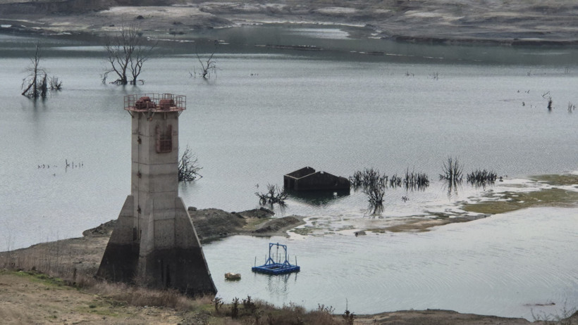 Dron ile yapılan çekimlerde barajdaki su seviyesinin kritik düzeye gerilediği gözlemlenirken, yetkililer vatandaşları su tasarrufu yapmaları konusunda uyarıyor.