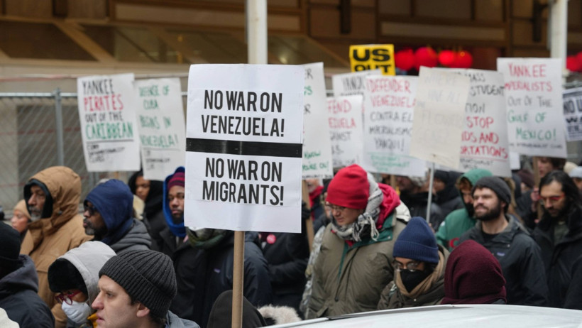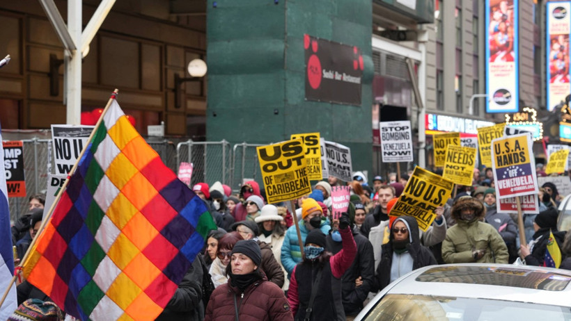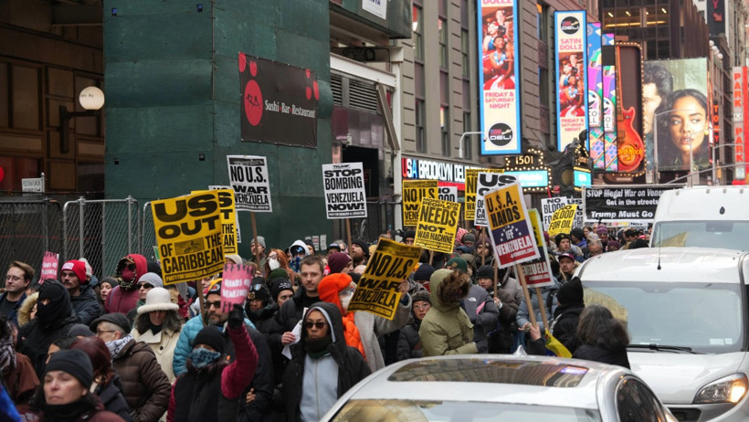 Göstericiler, New York'un Times Meydanı'nda toplandı. Ellerinde pankartlarla meydanı dolduran binlerce kişi, burada yapılan konuşmaların ardından Manhattan sokaklarında yürüyüşe geçti. Kalabalık, ABD'nin Venezuela üzerindeki askeri müdahalesinin sona ermesini talep etti.