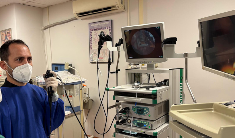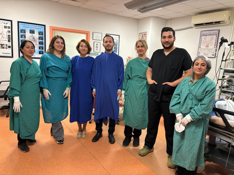 Dr. Öğr. Gör. Aliye Gamze Çalış, kronik öksürük ve balgam şikayetiyle başvuran Sahibe Güzin Zeybekoğlu’nun dış merkezde çekilen 4 yıllık akciğer tomografilerini tekrar incelediklerini belirterek, “Sağ akciğer alt hava yolunda bir metalik dansite gördük” dedi. Daha sonra hastaya bronkoskopi işlemi uygulamaya karar verdiklerini ifade eden Dr. Çalış, şunları söyledi: