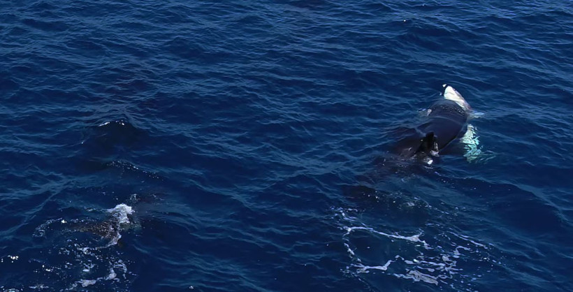 Frontiers in Marine Science dergisinde yayımlanan bir araştırmaya göre, ele geçirilen dron görüntülerinde katil balina sürüsünün büyük beyaz köpek balığını çember içine alarak, ardından da sırayla ağızlarına alıp ters çevirdiği gözlemlendi.