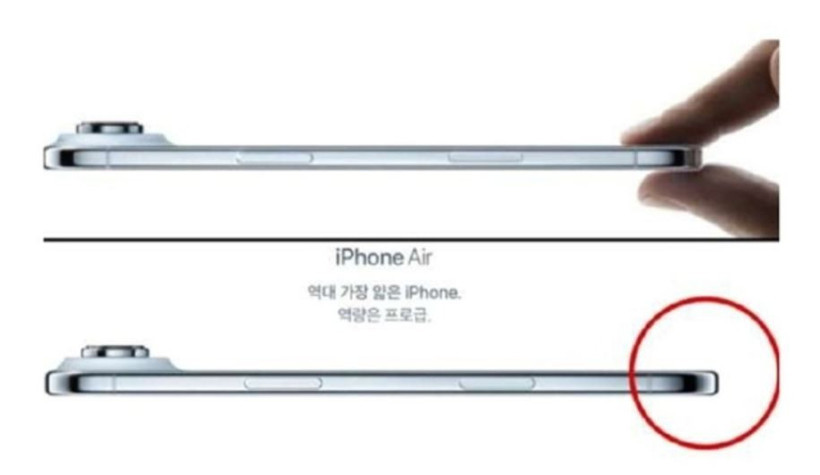 Apple ise iPhone 17 Air modelini tanıtırken başka ülkelerde söz konusu jestle cihazın ne kadar ince olduğunu gösterirken Güney Kore'deki reklam afişlerinde bu jesti kullanmadı.