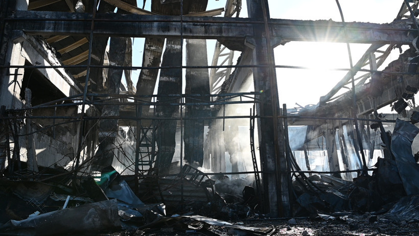 Yangının ardından yıkıntı haline gelen fabrika, havadan dronla görüntülendi ve konuya ilişkin soruşturma devam ediyor.