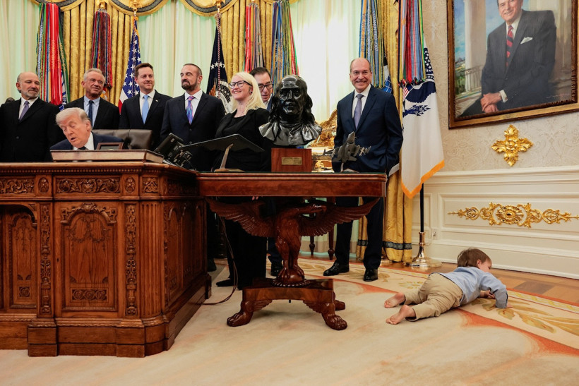Bazı açıklamalarda bulunan Trump'ın konuşması sırasında küçük çocuk bütün dikkatleri üzerine çekmeyi başardı. Çıplak ayakla Oval Ofis'te eğlenen çocuk için ABD medyası “mucize çocuk” yorumunu yaparken Trump ilacın etkisiyle ilgili olarak ise, “Bu gerçekten inanılmaz. Yüzde yüz sağırdı, ama bu mucize ilacı aldı ve şimdi annesi Sierra'nın 'Seni seviyorum' dediğini duyabiliyor” açıklamasını yaptı.