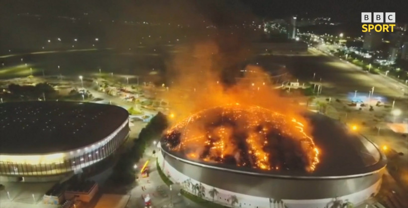 Rio de Janeiro'nun Olimpiyat Parkı'nda yer alan velodromda çarşamba sabahı yangın çıktı.