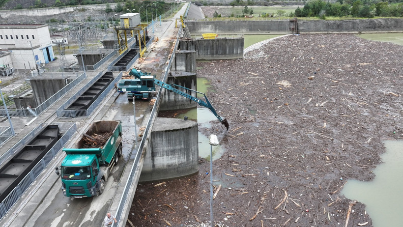 Devlet Su İşleri (DSİ) ekipleri, baraj gövdesinde biriken tomruk ve çamurların temizlenmesi için çalışmalarını sürdürüyor. Ekipler, iş makineleriyle yoğun bir tempoyla göl yüzeyini kirlilikten arındırmaya çabalıyor.