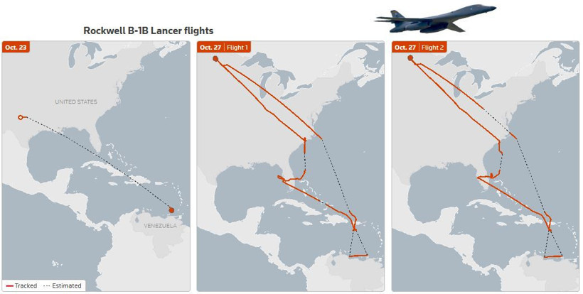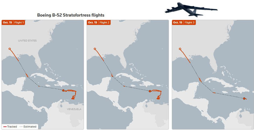 15 Ekim’de Louisiana’daki Barksdale Üssü'nden kalkan üç B-52 bombardıman uçağı, Venezuela kıyıları boyunca uçuş yaparak ülke hava sahasına tehlikeli derecede yaklaştı. Bu uçaklar, nükleer kapasiteye sahip uzun menzilli bombardıman uçakları olarak bilinmektedir.