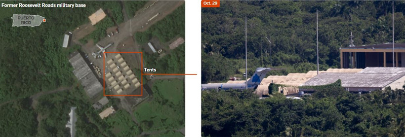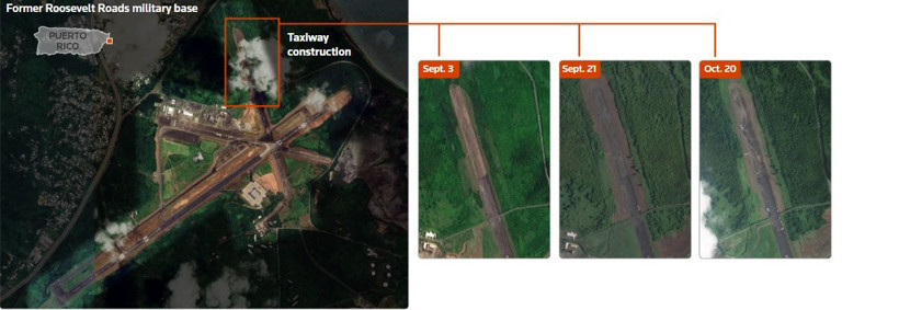 Uydu görüntüleri, Roosevelt Roads üssünde savaş uçakları ve kargo uçaklarının inişine uygun pist düzenlemeleri, taşınabilir hava trafik kuleleri ve güvenlik altyapısı kurulduğunu gösteriyor. Bunun yanı sıra, üste cephane deposu inşaatının da gerçekleştirildiği tespit edildi.