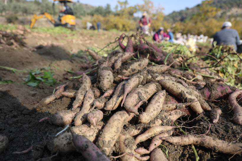 Bölgeden hasat edilen tatlı patates, Türkiye genelinde satışa sunulurken, kilogram fiyatı tarlada 30 TL'den işlem görüyor. Vitamin zengini olan tatlı patatesin verimi, kuraklık nedeniyle yarı yarıya düşmesine rağmen manavlarda 50 TL ila 70 TL arasındaki fiyatlarla satılmaya devam ediyor.