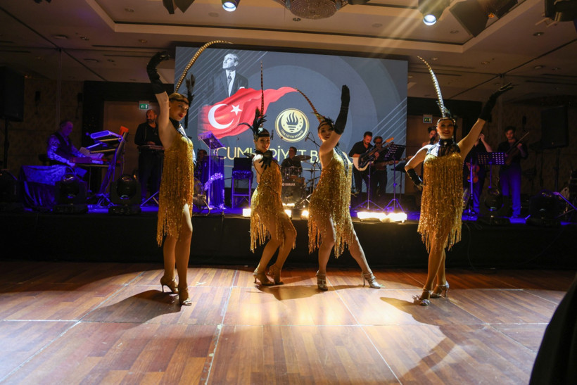 Yemekle başlayan etkinlik, Flapper Swing grubunun konseri ve dans gösterileriyle devam etti. Geç saatlerde Nükhet Duru sahne aldı. Gülşah Saraçoğlu imzalı kostümü ile performans sergileyen Duru, sevilen şarkılarını seslendirdi. Yüzünde maske ve kafasında tüylerden oluşan bir taç ile sahneye çıkan sanatçı, “Cumhuriyet balosunda sahne almak benim için büyük bir onur. Görüyorsunuz, süslenmemiş hiçbir yerim kalmadı, kendimi feda ettim.” ifadelerini kullandı. Duru, ilk şarkının ardından maske ve tacını çıkararak performansına devam etti.