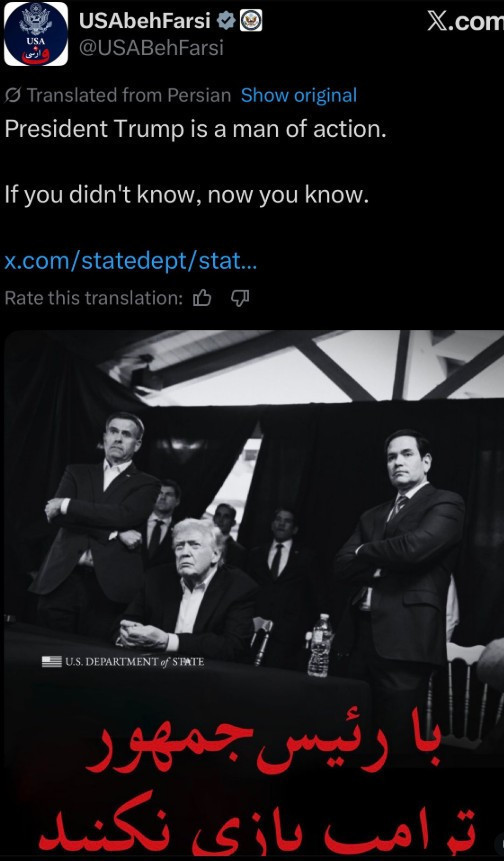 ABD Dışişleri Bakanlığı'nın Farsça X hesabında ise Trump'ın operasyon odasında çekilmiş bir fotoğrafı paylaşılmış ve “Başkan Trump eylem adamıdır. Eğer önceden bilmiyorsanız, şimdi biliyorsunuz” mesajı yer aldı.