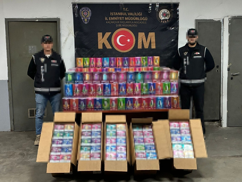 Beylikdüzü'nde okul çevrelerinde gerçekleştirilen dron destekli denetimlerde izlenen bir kişi, TIR parkındaki konteynerde 34 bin 400 elektronik sigara ile yakalandı.