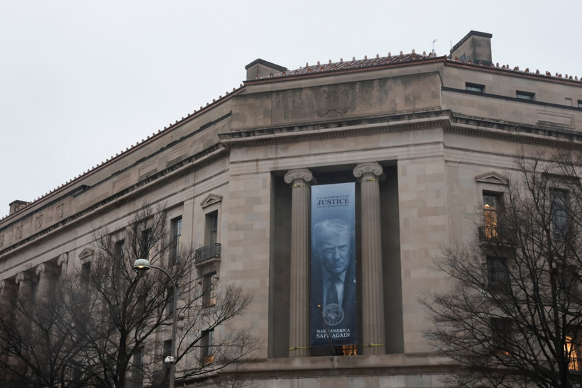 Son zamanlarda federal kurumlar üzerinde etkisini artırmaya çalışan ABD Başkanı Donald Trump'ın resminin bulunduğu dev bir pankart, Washington'daki Adalet Bakanlığı binasının önüne asıldı.