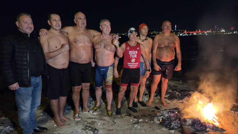 Ramazan Değer, “Dünya için barış ve kardeşlik dileğiyle burada toplandık. Ancak, alışkanlığı olmayanların soğuk suya girmesini önermiyoruz. Biz yıllardır birlikte yüzüyoruz, bu nedenle soğuk havada denize girmeye alışığız. Hepimize 2026 hayırlı olsun” dedi. Ahmet Ünsal da, “Her zaman bu şekilde yüzüyoruz. Nice mutlu yıllara, bütün İslam âlemine” diyerek sözlerine ekledi.